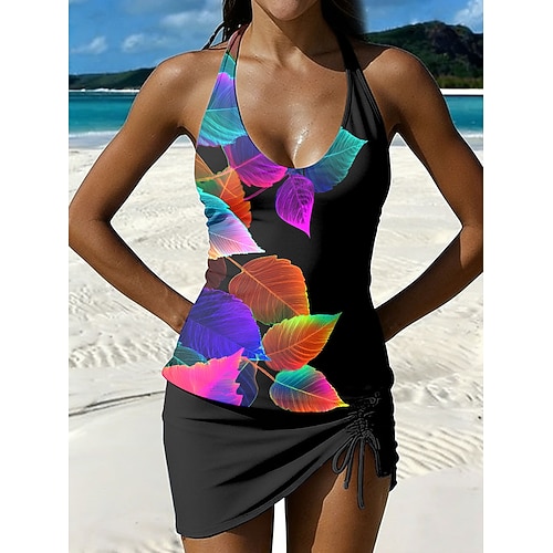 Per donna Costumi da bagno Tankini Gonna Costume da bagno Coulisse Elegante Vacanza Floreale Grafico Collo a U Senza Maniche Costumi da bagno