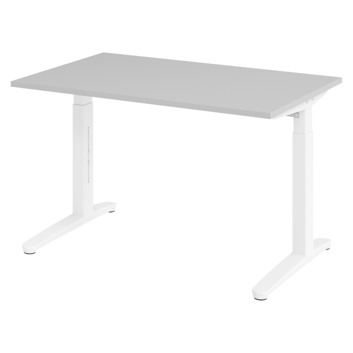 bümö manuell höhenverstellbarer Schreibtisch 120x80 in grau, Gestell in weiß - PC Tisch höhenverstellbar & klein, höhenverstellbarer Tisch Büro,