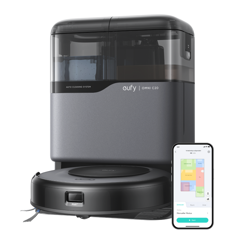 eufy Saugroboter Omni C20 mit All-in-One-Station,Auto-Entleerung, Auto-Wasch- und Trocknungsfunktion, 7.000Pa, 8,5cm Design, Staubsauger Roboter mit Wischfunktion,Kindersicherung