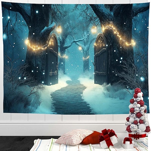 arazzo natalizio – arazzo da parete festivo, arazzo decorativo con Babbo Natale, fiocco di neve, albero di Natale, paese delle meraviglie invernale, per la decorazione della casa, della camera da