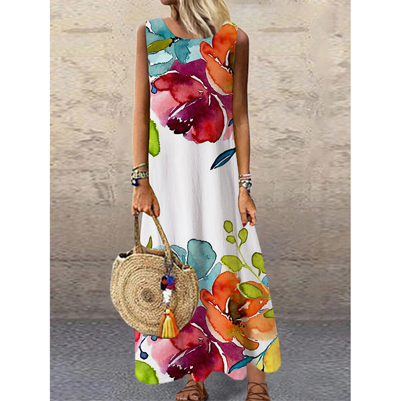 Women's Maxi Dress Casual Dress Sundress Shift Dress Fashion Vacation Party Casual Regular Fit Floral Print Sleeveless Crew Neck Rainbow Summer Spring Fall Autumn