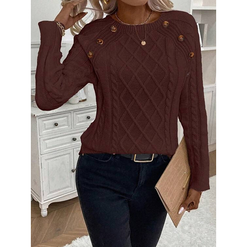 Women's Sweater Casual Soft Pure Color Cable Crew Neck Buttons Knitted Long Sleeve Regular Tops Knit Outdoor Daily Weekend Black White Fall Winter