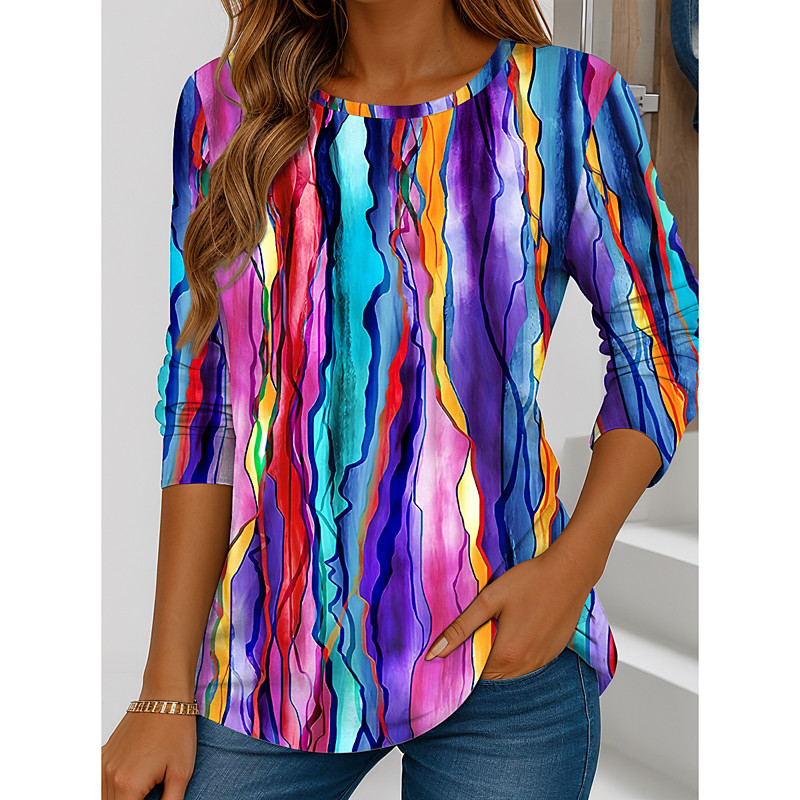 Women's T shirt Long Sleeve Crew Neck Long Sleeve Tunic Graphic Geometric Striped Vintage Stylish Regular Tops Daily Print White Blue Purple Orange Brown Fall Prefall