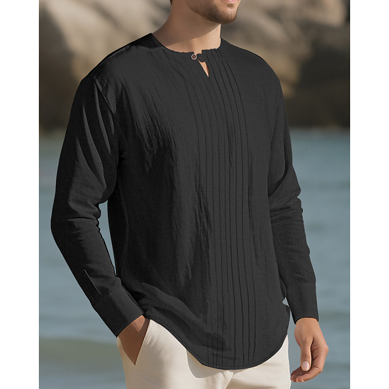Men's Shirt Linen Shirt Casual Shirt Cotton Shirt Plain Vacation Hawaiian Black White Dark Green Khaki Long Sleeve Crew Neck Spring Fall Clothing Apparel Pleats