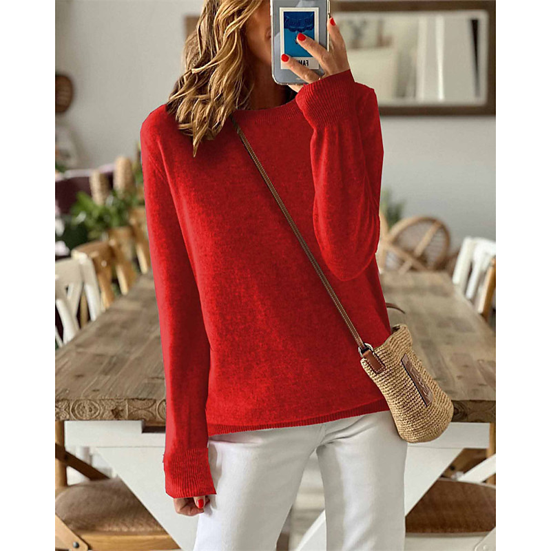 Women's Sweater Pullover Streetwear Casual Solid Color Crew Neck Knitted Long Sleeve Regular Tops Knit Daily Holiday Going out Pink Wine Fall Winter
