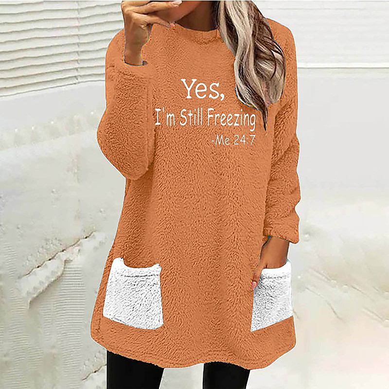 Women's Pullover Sweatshirt Letter Warm Fashion Casual Long Sleeve Crew Neck Long Tops Street Dailywear Casual Patchwork Pocket Print Pink Blue Purple Orange Green Fall Winter
