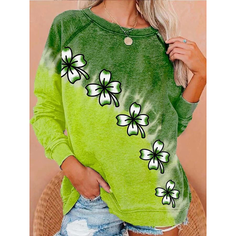 St. Patrick Women's Pullover Sweatshirt Floral Graphic Fashion Casual Long Sleeve Crew Neck Round Neck Regular Tops Street Dailywear Print Blue Purple Green Spring Fall Winter