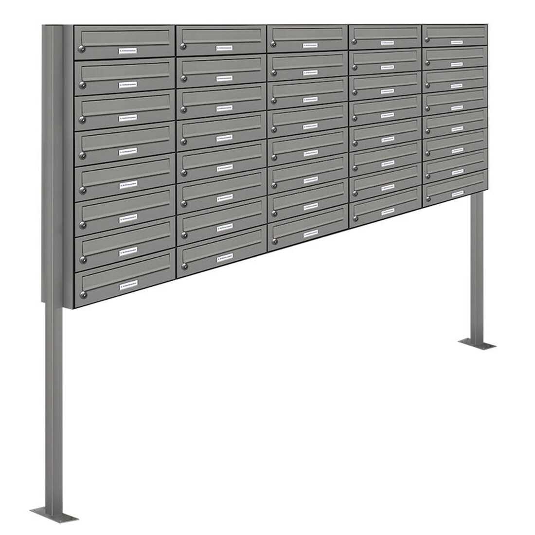 AL Briefkastensysteme 40 Fächer Premium Stand Briefkasten Anlage in RAL 9007 Aluminium Grau, Post A4, robust, wetterfest, Artikelnummer: 132P40S5P9007