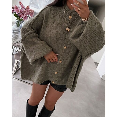 Per donna Felpa Cardigan Vintage Streetwear Tinta unica A Coste Girocollo Bottoni Lavorato a maglia Manica Lunga Top Regolari Maglia Quotidiano Uscire Weekend Nero Verde Autunno Inverno