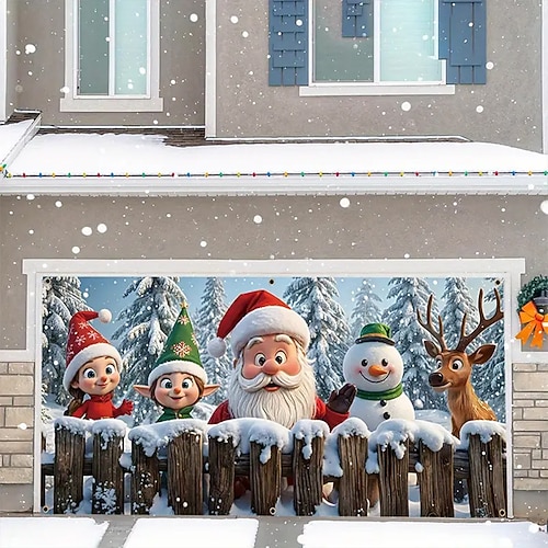 Natale arazzo Copertura per porta del garage Grande appeso Pupazzo di neve Regalo Carino 3D Da serata All'aperto Vacanze Sfondi di ripresa Yarda Arredamento per la casa