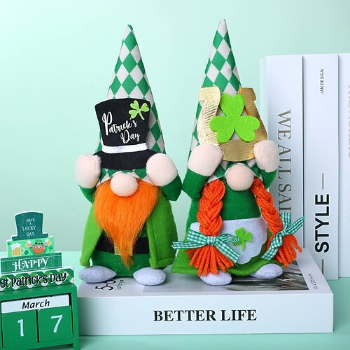 Festa delle foglie verdi, guardiano irlandese, festa di San Patrizio, trifoglio, cappello lavorato a maglia, coppia, bambola, decorazione per feste