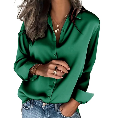 Per donna Camicia Blusa Semplice Elegante Vintage Manica Lunga Colletto a Camicia Top Regolari Quotidiano Lavoro Ferie Patchwork Bottoni Nero Champagne Viola Marrone Verde Primavera Autunno