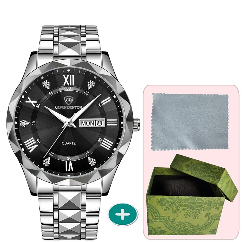 Advanced Men's Wristwatch Fashionable Men's Quartz Watch Rhinestone Decoration Dual Calendar Luminous Dial Stainless Steel Case Strap The Best Gift Choice for Men
