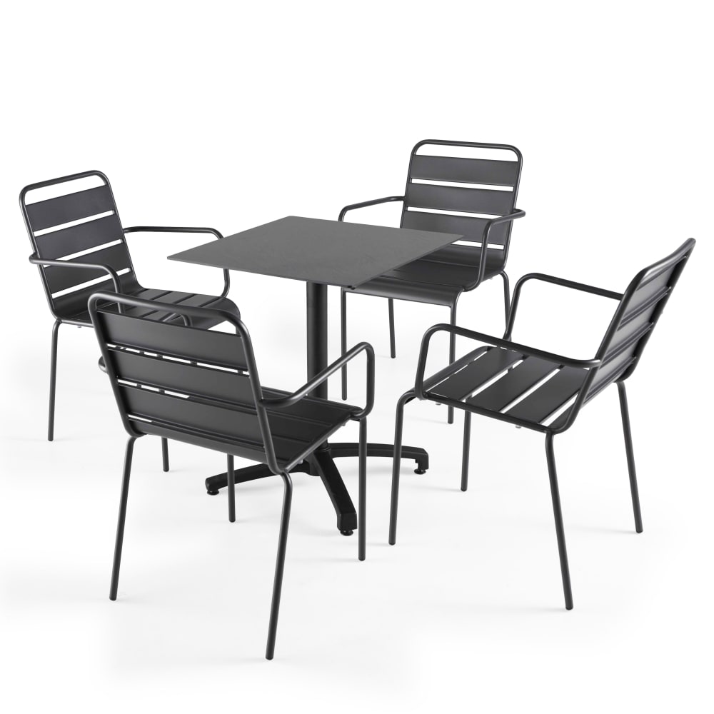 Tavolo da giardino quadrato e 4 sedie in acciaio talpa