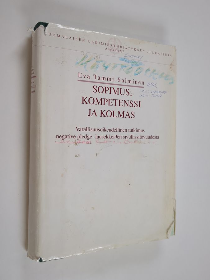 Eva Tammi-Salminen : Sopimus, kompetenssi ja kolmas : varallisuusoikeudellinen tutkimus negative pledge -lausekkeiden sivullissitovuudesta