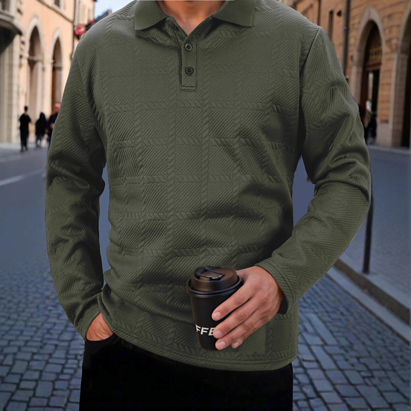 Men's Textured Golf Shirt Work Casual Lapel Long Sleeve Fashion Comfortable Plain Buttons Spring Fall Dark Khaki Black White Navy Blue Military Green Gray Textured