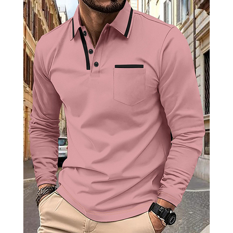 Men's Golf Shirt Golf Polos Shirts Work Casual Lapel Long Sleeve Basic Modern Color Block Pocket Buttons Spring Fall Regular Fit Black Pink Orange Green Golf Shirt