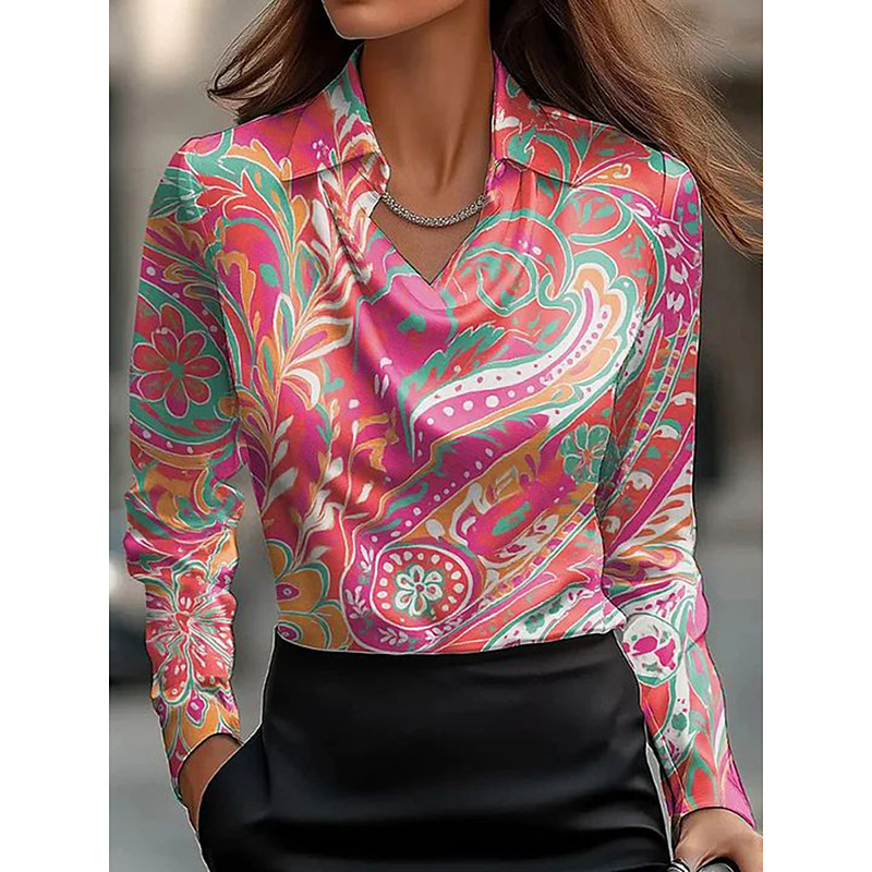 Women's Shirt Floral Graphic Elegant Stylish Casual Long Sleeve Cowl Neck Regular Tops Work Party Evening Wear Daily Ruched Draped Pink Navy Blue Blue Green Summer Fall