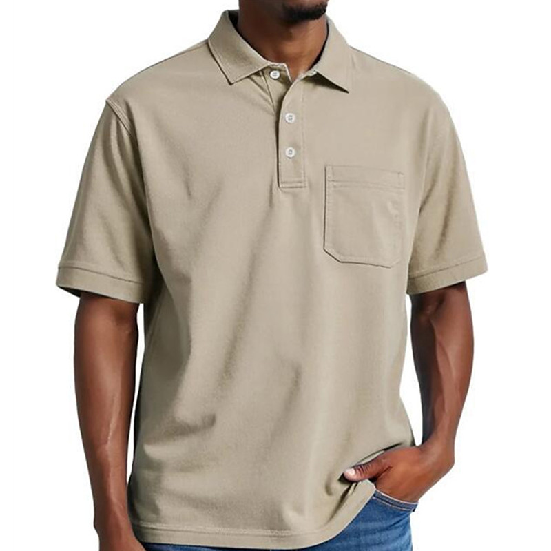 Men's Golf Shirt Golf Polos Shirts Work Casual Lapel Short Sleeve Basic Modern Plain Pocket Buttons Summer Regular Fit Black White Light Green Red Navy Blue Light Purple Golf Shirt