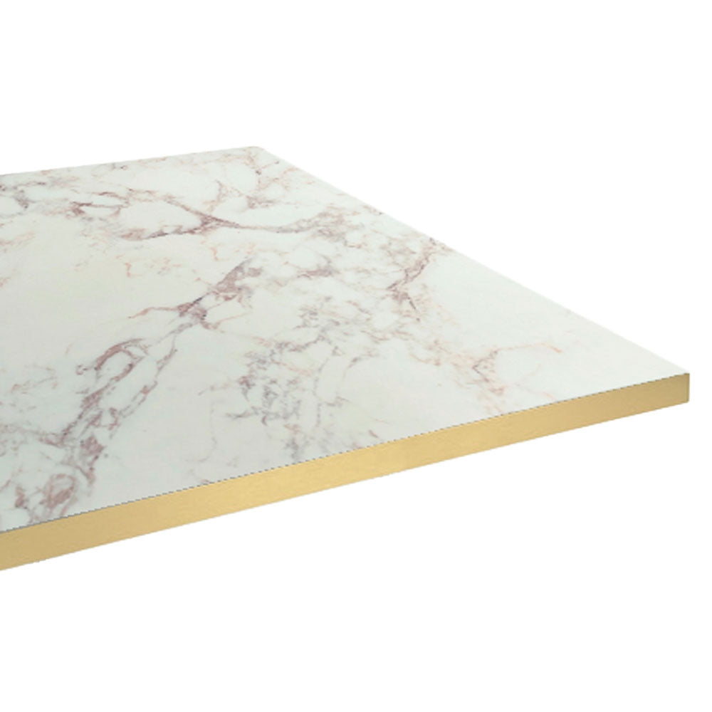 RestooTab - Tischplatte 90x90 Dekor Marmor olympo Kanten messingfarben