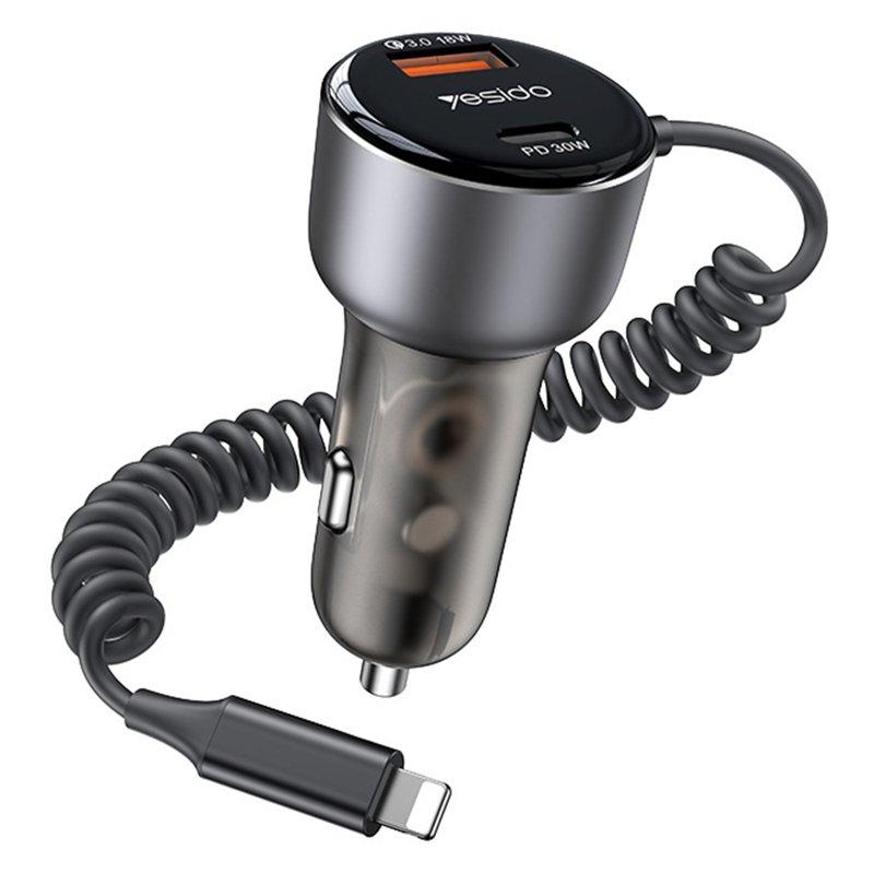 YESIDO Y57 Snabbladdare för bil 50W med spiral Lightning kabel