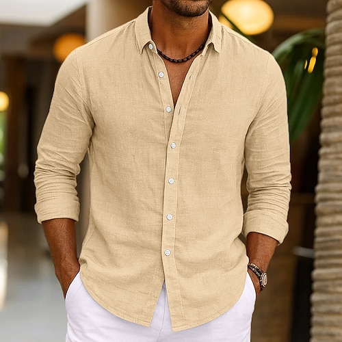 Per uomo Camicia Camicia di lino Camicia Estiva Abbigliamento da spiaggia Camicia con Bottoni Semplice Vacanza Casuale Nero Rosa Blu marino Verde Manica Lunga Collo ripiegato Primavera Estate