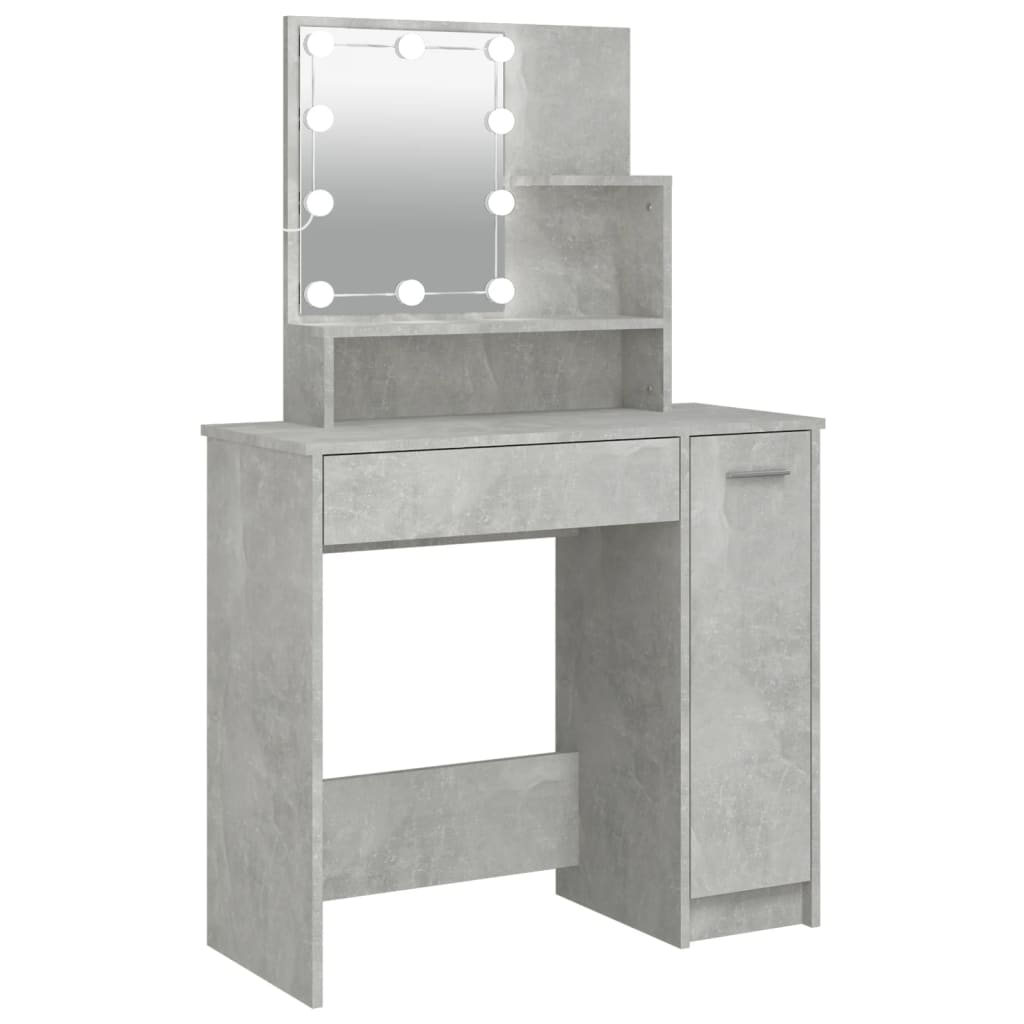 Makeupbord med LED-lys 74,5x40x141 cm betongrå