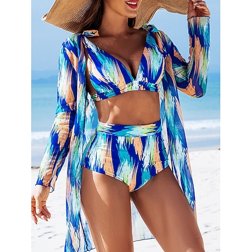 Costume da bagno bikini da donna 3 pezzi pantaloni corti Slim senza schiena per vacanze al mare color block scollo a V senza maniche
