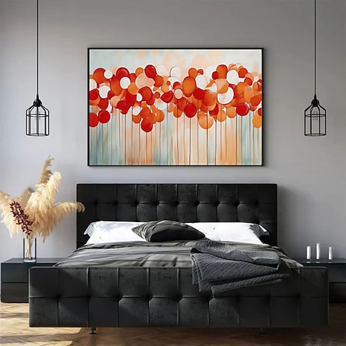 Abstraktes Ölgemälde aus der Mitte des Jahrhunderts, handgefertigte Wandkunst, rot-blau, Mid-Century Modern, Retro-abstrakte Mid-Century-Wandkunst, große Wandkunstdekoration, orangefarbene