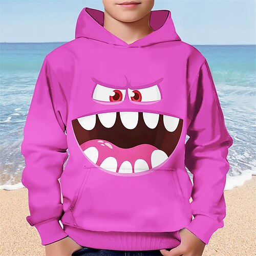 Jungen Cartoon Lustiges Lächeln Gesicht Hoodie Langarm 3D Druck Herbst Winter Mode Streetwear Kinder 4-12 Jahre Mit Kapuze Outdoor Casual Täglich Normale Passform