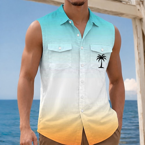 Per uomo Albero di Cocco Colore sfumato Piante Tropicali Camicia Camicia hawaiana estiva Camicia Aloha Senza Maniche Resort Vacanza al Mare Estate Primavera Collo ripiegato Stampa 3D Due tasche
