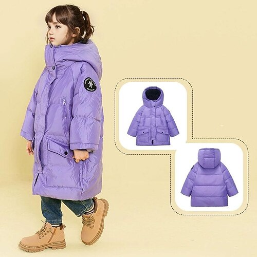 Kinder Mädchen Daunenmantel Daunenjacke Einfarbig Mode Tasche Schule Mantel Oberbekleidung 4-12 Jahre Herbst Schwarz Rote Purpur