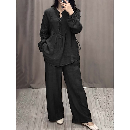 Per donna Set di biancheria in cotone Set di Pantaloni Bolero Top Manica Lunga Scollo a V Tinta unica Quotidiano Casuale Quotidiano All'aperto Nero Vino Blu marino scuro Estate Vestibilità regolare