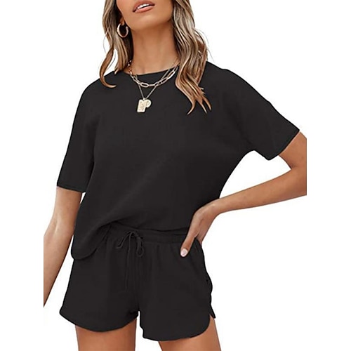 Per donna Set da due pezzi Set di Pantaloncini Manica Corta Girocollo Semplice Moda Streetwear Casuale Quotidiano All'aperto Nero Rosa Rosso Estate Vestibilità regolare