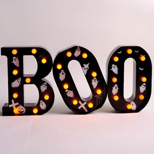 Decorazioni di Halloween per interni - 3 lettere luminose a LED con cartello nero, lettere di Halloween, luci per la casa, interni, cucina, camino, festa, decorazioni da tavola