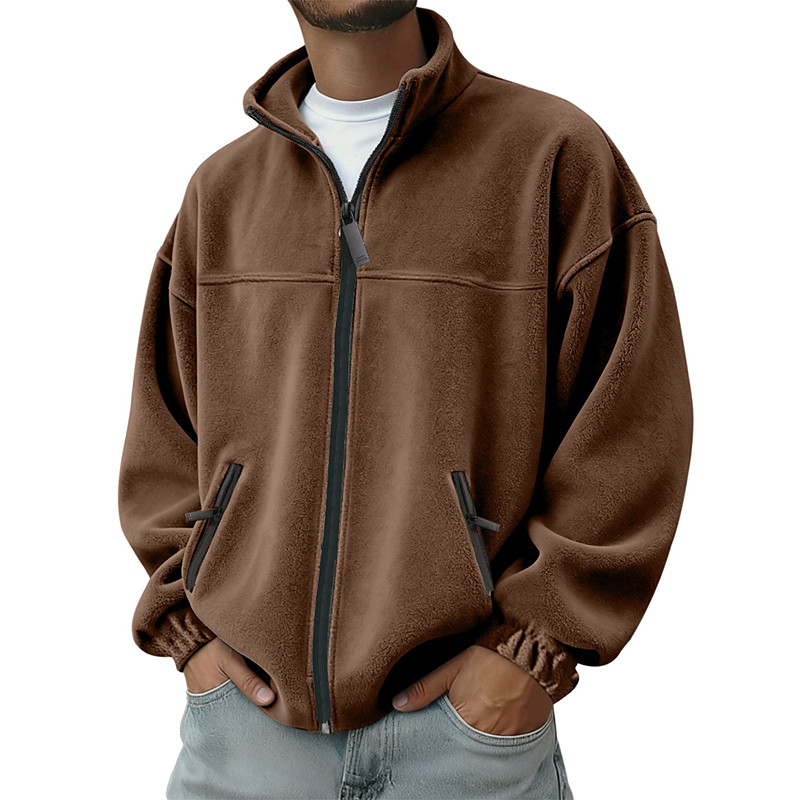 Men's Outdoor Jacket Fleece Jacket Formal Home Thermal Warm Pocket Basic Spring Fall Winter Solid Color Active Neutral Shirt Collar Regular Dark Gray Black Purple Orange Light Grey Jacket