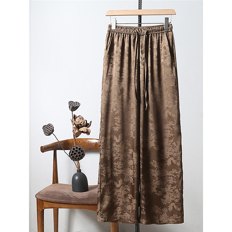 Women's Wide Leg Chinos Cropped Pants Elegant Vintage Fashion Full Length Medium Waist Solid Color Floral Graphic Patchwork Pocket Elastic Waistband Comfy Comfortable Breathable Inelastic Daily Home