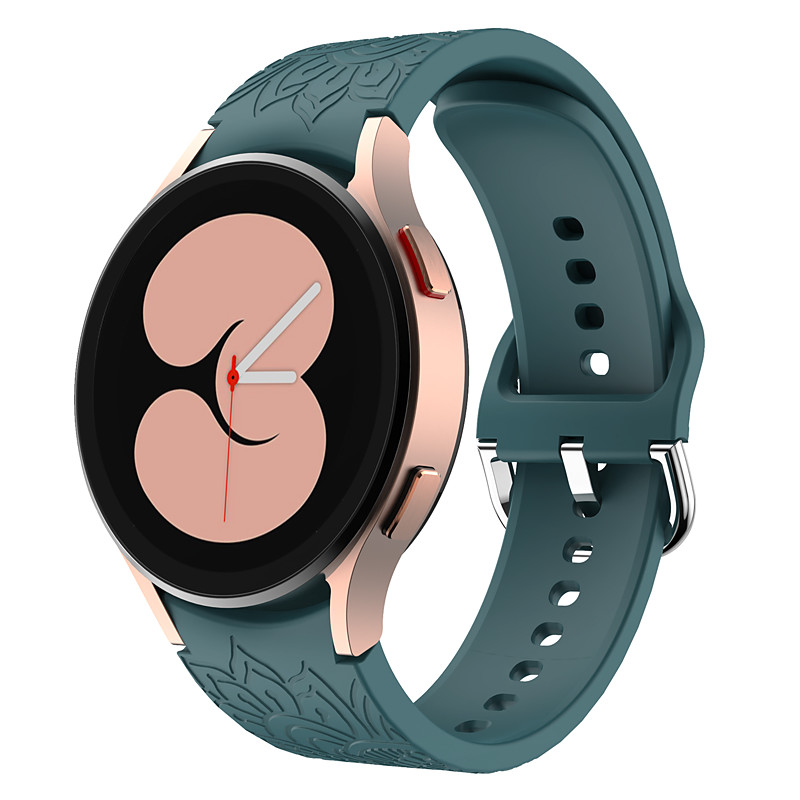 Watch Band for Samsung Galaxy Watch 7/6/5/4 40/44mm, Watch 6 Classic 43/47mm, Watch 4 Classic 42/46mm Silicone Replacement Strap Adjustable Sport Band Modern Buckle Flower Engraved Wristband