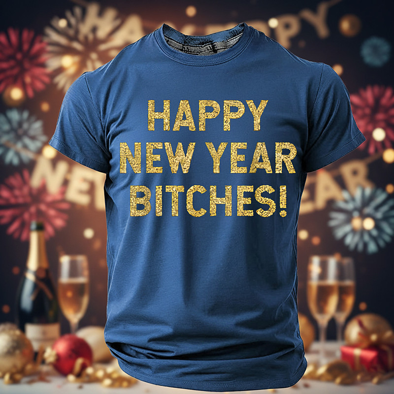 New Year Men's Happy New Year Fireworks 2026 T Shirt Short Sleeve T shirt 3D Print Crew Neck Shirt Exaggerated Designer Artistic Party Street Club Blue 1# Black Red Fall Winter Clothing Apparel S M L