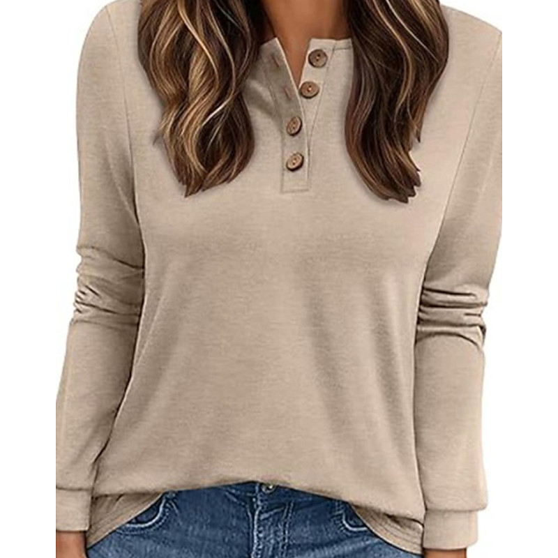 Women's Dressy Tops Plaid Plain Elegant Vintage Stylish Long Sleeve Crew Neck Regular Tops Work Daily Going out Buttons Black White Blue Apricot Fall Winter