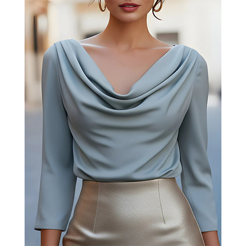 Women's Blouse Dressy Tops Plain Elegant Vintage Ladies Long Sleeve Off Shoulder Regular Tops Daily Work Holiday Ruched Tunic Black White Wine Brown Gray Winter