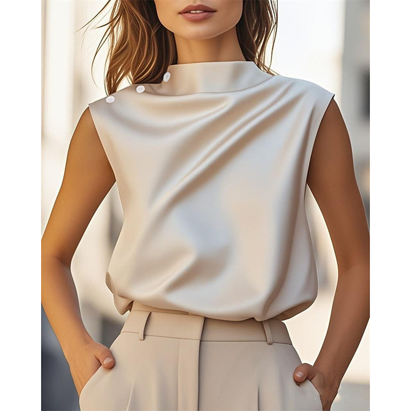Women's Summer Tops Blouse Dressy Tops Plain Elegant Vintage Ladies Sleeveless Halter Neck Regular Tops Daily Work Holiday Ruched Patchwork Rhinestone Black Summer Spring