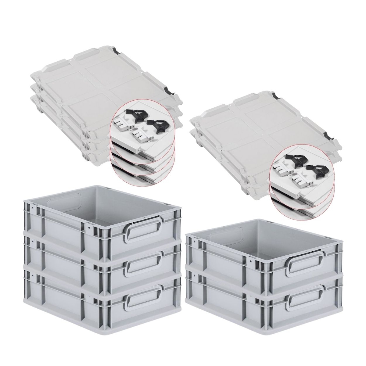 PROREGAL 5x Eurobox NextGen Grip mit Scharnierdeckel & schwarzen Verschlüssen | HxBxT 12x30x40cm | 11 Liter | Griffe geschlossen | Glatter Boden