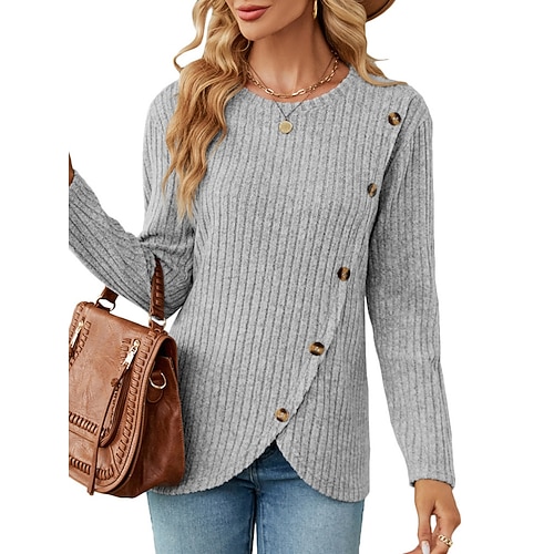 Per donna Felpa Casual Tinta unica Girocollo Bottoni Manica Lunga Top Regolari Maglia Casa Quotidiano Ferie Blu Nero Primavera Autunno