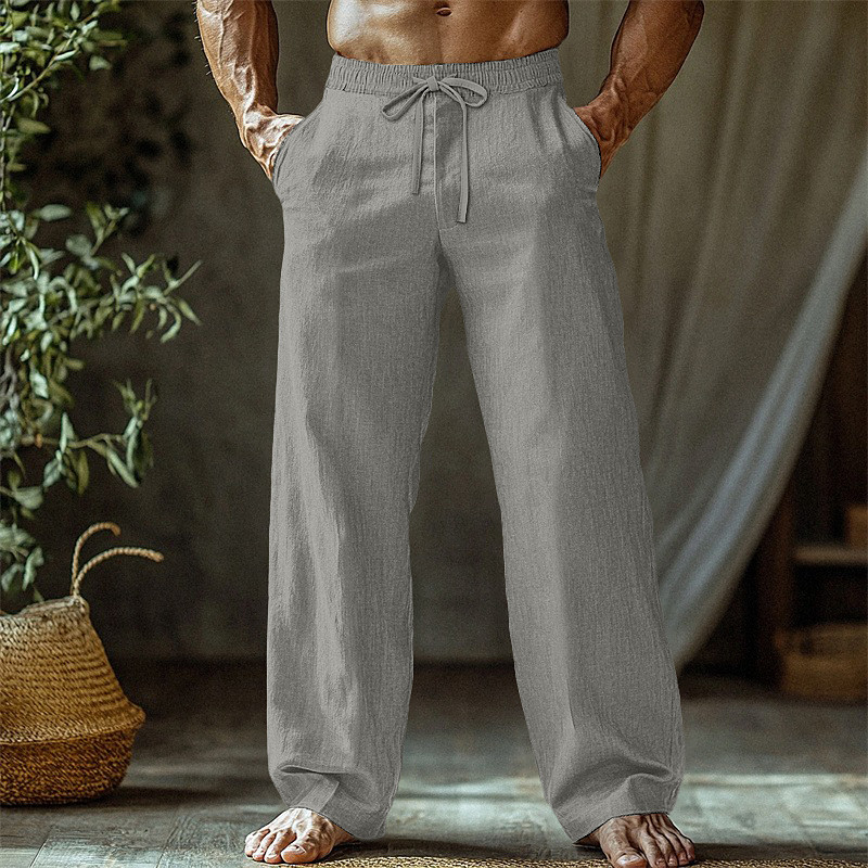 Men's Linen Pants Trousers Summer Pants Baggy Pants Beach Pants Drawstring Elastic Waist Straight Leg Plain Comfort Breathable Full Length Home Daily Holiday Vacation Fashion Black White Inelastic