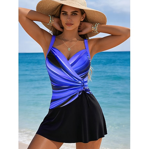 Womens Costume da Bagno Intero Sottile Colorblock Monokini Controllo Pancia Alta Vita Slim Schiena Nuda Vacanza Vintage Ombre Grafico U Collo Senza Maniche Costumi da Bagno