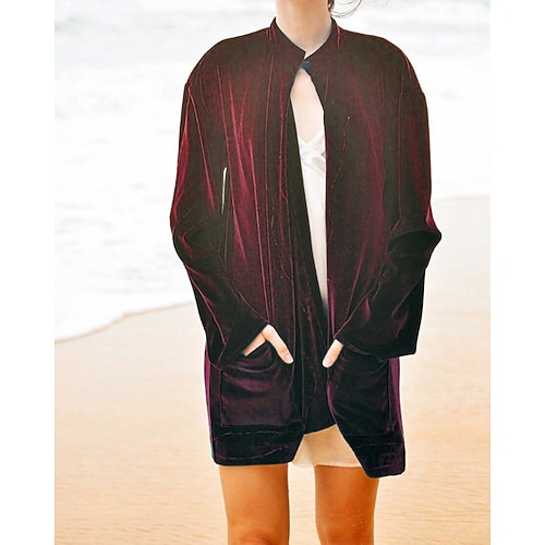 Per donna Giacca Camicia Blazer di velluto Confortevole Tasca Casual Semplice Vacanza Uscire Weekend Regolare Collo alla coreana Vestibilità regolare Manica Lunga Capispalla Vino Verde scuro Fucsia