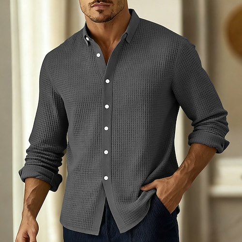 Per uomo Camicia Camicia a nido d'ape Camicia casual Camicia con Bottoni Nero Vino Blu marino Verde Manica Lunga Semplice Bavero Casuale Quotidiano Abbigliamento Moda Streetwear Casual