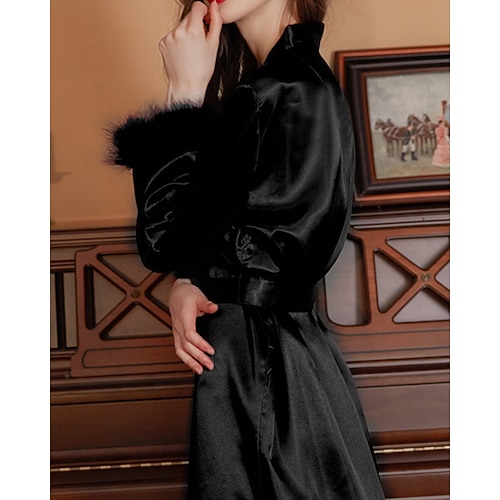 Per donna Accappatoio Casual Morbido Raso Colore Puro Piuma Quotidiano Casa Da letto Manica Lunga Scollo a V Nero Bianco Champagne Rosa Vino Estate Vestibilità regolare