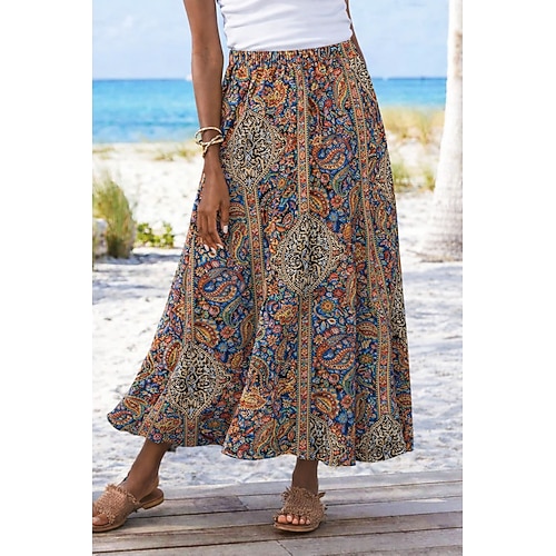 Per donna Gonna da vacanza Elegante Bohemien Vintage Casual Maxi Vita Alta Gonne Floreale Grafico Paisley Tasca Stampato Inelastico Quotidiano Spiaggia Blu blu navy Rosso Estate 95% poliestere 5